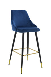 Set van 2 Barkrukken – In Hoogte Verstelbaar – Blauw Fluwelen Zitting
