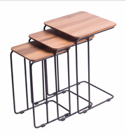 Set van 3 Bijzettafels met MDF Blad en Metalen Onderstel – 42 x 65 cm – Bruin/Zwart