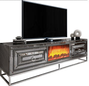 Elegant Antraciet TV Meubel met Sfeerkachel en Spiegelglas - Antraciet Spiegelglas