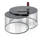 FLORANSA Metal Round Salontafel Antraciet Spiegelglas - Zilver/Chroom - Antraciet Spiegelglas